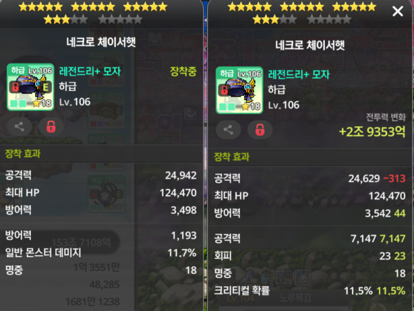 👉 아이템 : '네크로 체이서햇' 비교 결과, 오른쪽을 추천합니다!